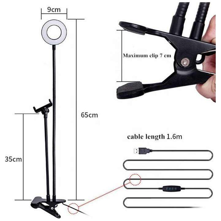 Brighten up your video calls, selfies, and content creation with this versatile LED ring light. Designed with convenience in mind, it features:
