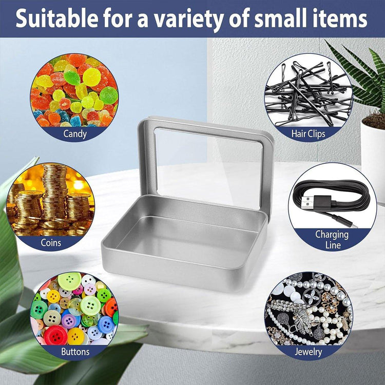 These 10pcs Rectangular Tinplate Boxes are made of high-quality metal for durability and long-lasting use. Featuring a full window design, these small storage boxes allow you to clearly view their contents, making them ideal for organizing small items such as USB drives, jewellery, office supplies, and more. The compact, sturdy design makes them easy to store, carry, and display.