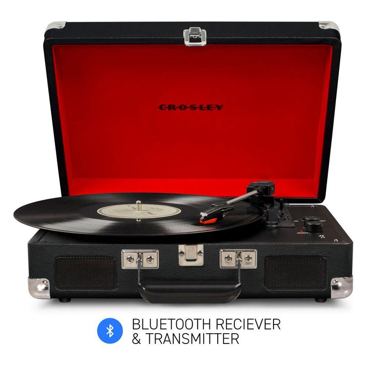 The one, the only, the original, Crosley Cruiser. Lightweight in its charming suitcase-style shell, its easy to use and a delight to hear. With pitch control, built-in speakers and NOW with Built-in Bluetooth receiver; stream your music via your phone to the improved stereo speakers of the turntable. Easily Switch to built-in Bluetooth transmitter and experience your records on your own wireless speakers or headphones. The Cruiser is ready to jam vinyl or your digital music. Choose from a rainbow of sound to start your vinyl adventure with this portable three-speed record player. Crosley Cruiser Bluetooth Portable Turntable - Portable Turntable, Belt Driven Turntable Mechanism, Plays 3 Speeds - 33 1/3, 45 And 78 RPM Records, Built-in Bluetooth Receiver and Bluetooth Transmitter (Connects to Bluetooth Speakers) , Auxiliary Input, Headphone Jack, RCA Audio Out, Adjustable Pitch Control, 6\" Full Range Speaker.