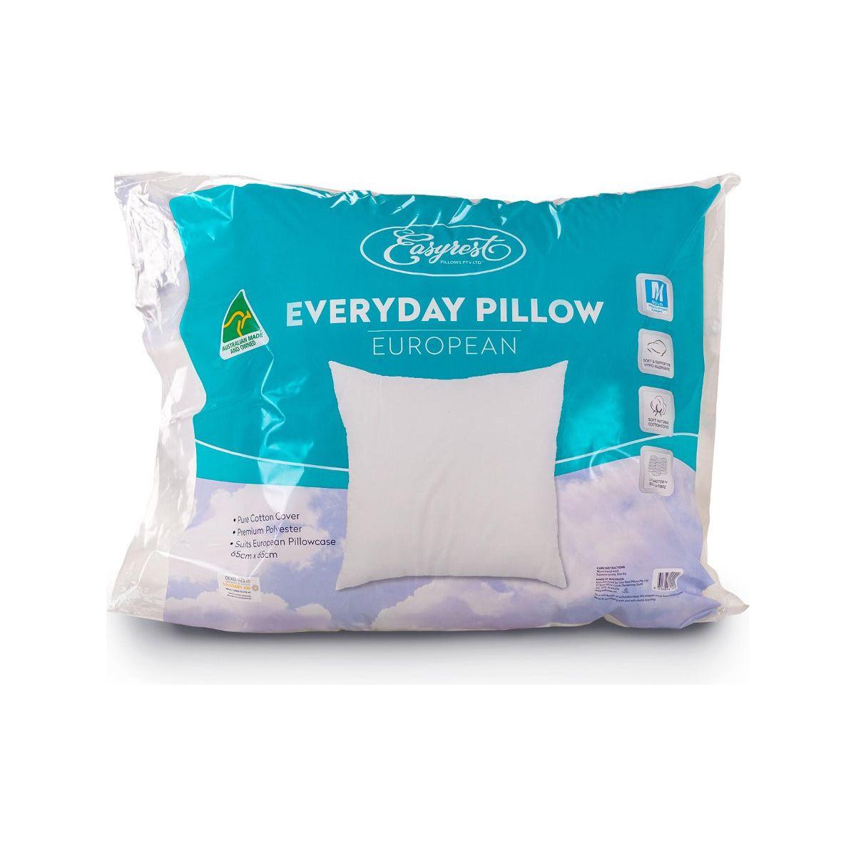 This Everyday European Pillow by Easyrest is a perfect addition to your bed for a comfortable and dreamy night's sleep. It features a solid colour design in shades of white with natural cotton cover and 900grams premium quality hollow polyester filling that will add a stylish comfort to your bedroom. Made from 100% Cotton for lasting resilience, support and comfort.