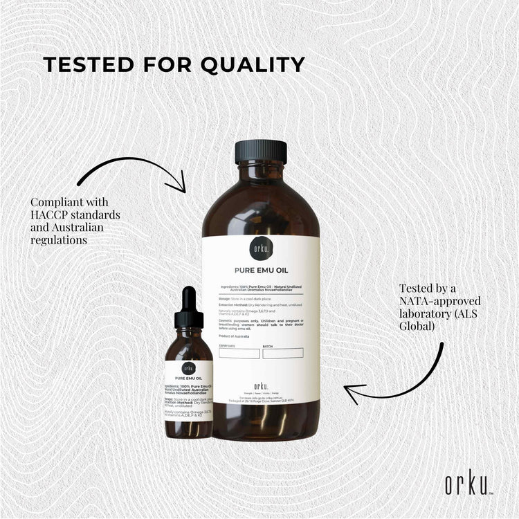 With its potent blend of essential fatty acids and vitamins, Orku Emu Oil has undergone specific heat treatment and testing to ensure its quality and safety of use in cosmetic products and for a myriad of applications.