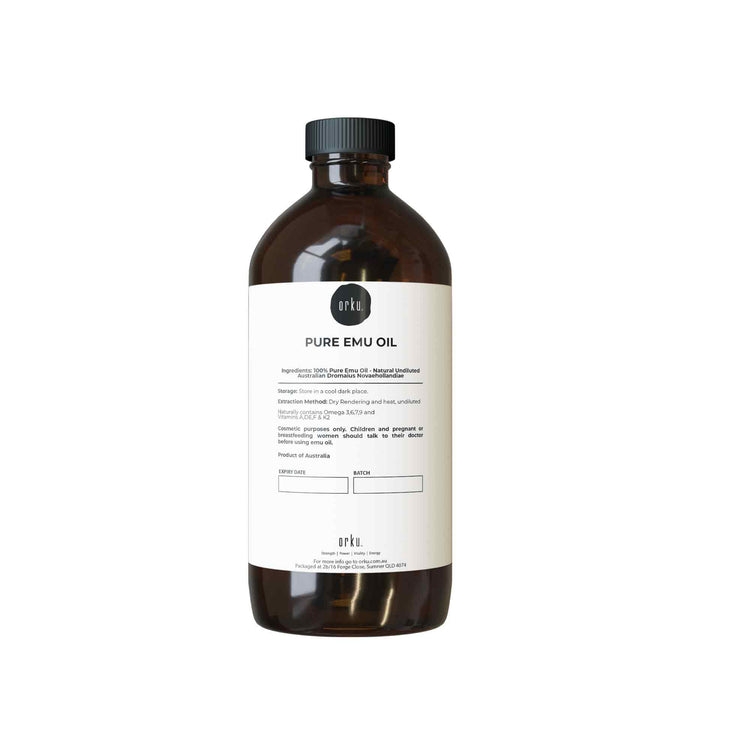 Orku Emu Oil is naturally rich in essential fatty acids, including Omega-3, 6, 7, and 9, and is also packed with vital vitamins such as Vitamin A, D, E, F, and K2.