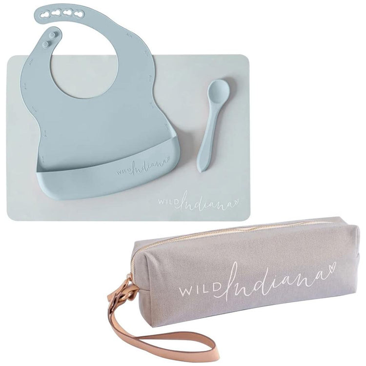 LIFEBEA WILD INDIANA Eating-out Comfy Silicone Baby Bib set for babies & Toddlers(10-72 Months) Waterproof baby fedding including Waterproof carry case (Duck Egg Blue)