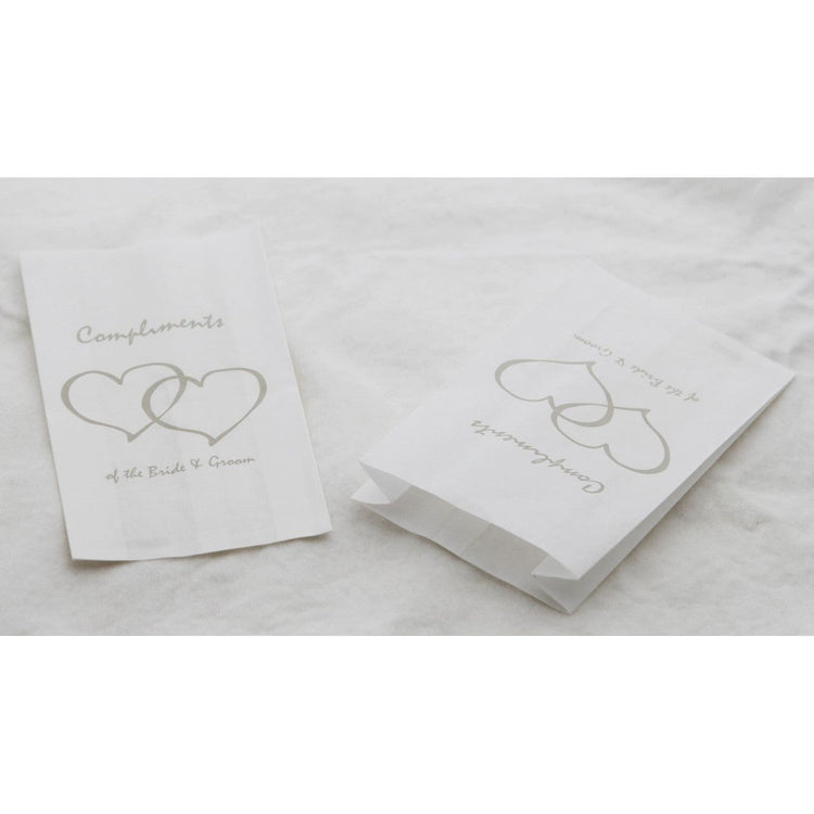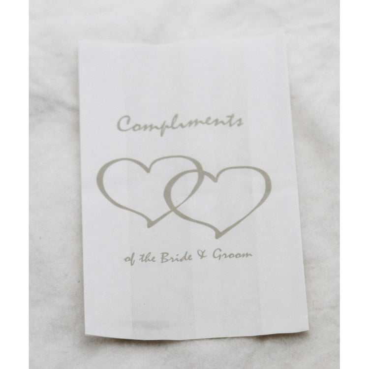 100 Pack Wedding Cake Bags Greaseproof Wax Paper Slice Take Home Favour Silver Heart n Message