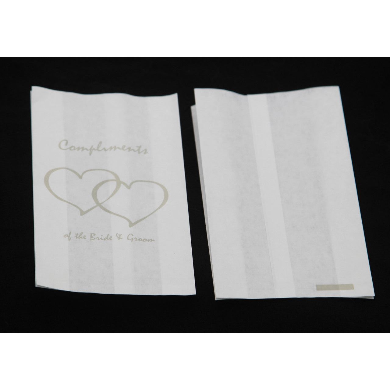This pack includes 100 greaseproof wax paper bags, each adorned with an elegant heart design that complements a variety of wedding themes. Measuring 8 cm x 15 cm, these bags are the perfect size for packaging individual slices of your wedding cake.