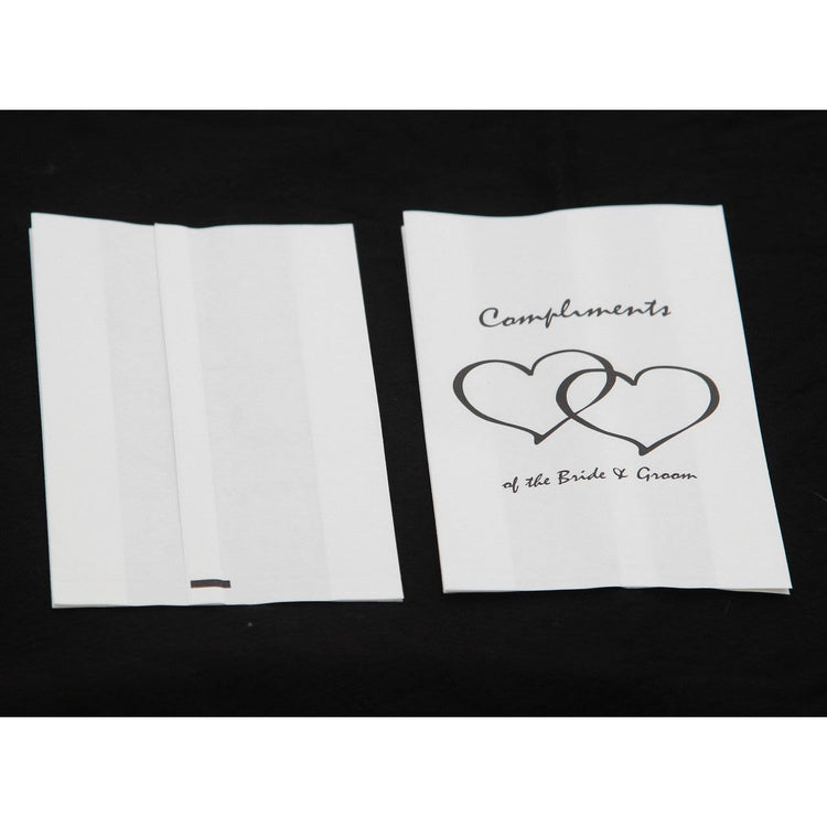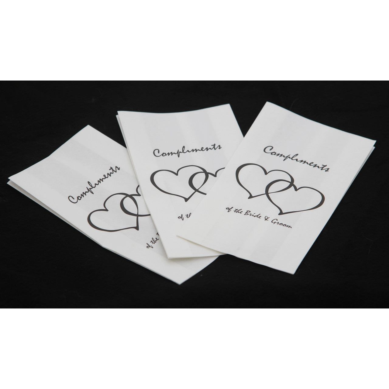 This pack includes 150 greaseproof wax paper bags, each adorned with an elegant heart design that complements a variety of wedding themes. Measuring 8 cm x 15 cm, these bags are the perfect size for packaging individual slices of your wedding cake.