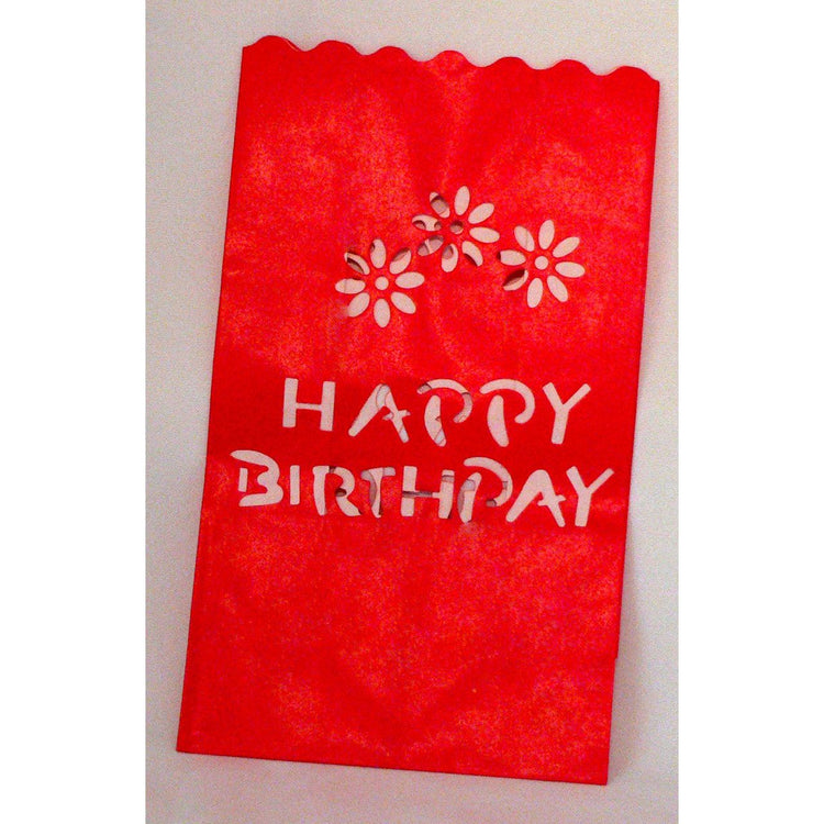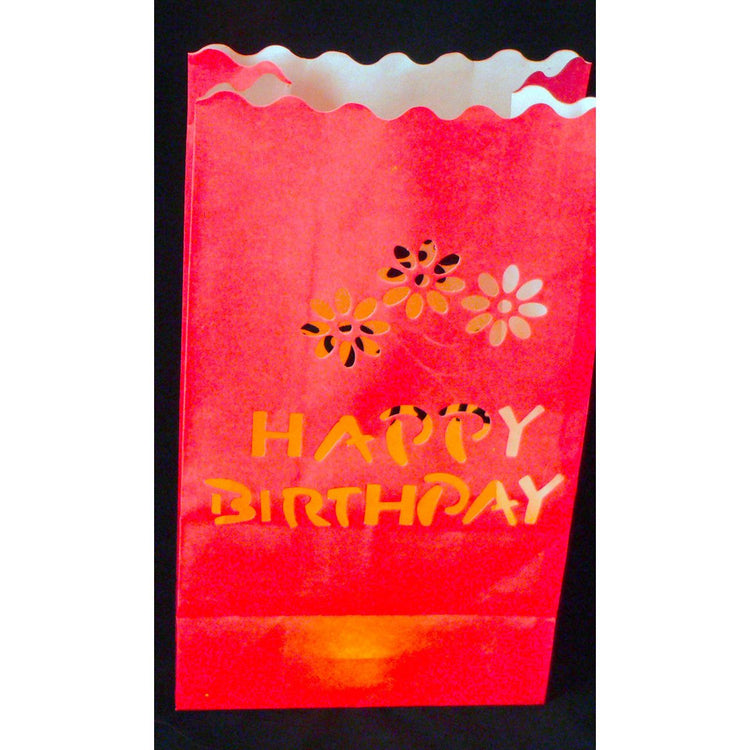 20 Pack Red Happy Birthday Luminary Paper Candle Tea Light Lantern Bags Garden Anniversary Birthday Night Decorations Evening Party