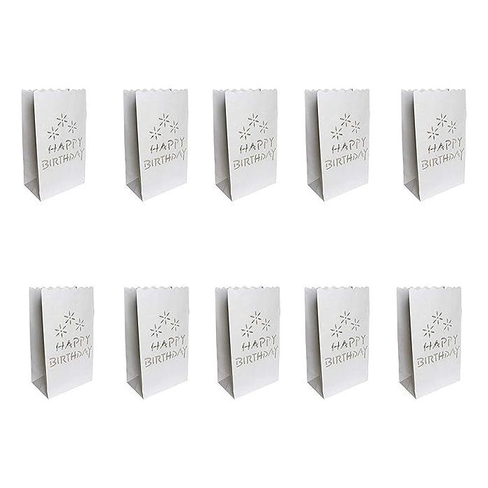 20 Pack White Happy Birthday Luminary Paper Candle Tea Light Lantern Bags Garden Anniversary Birthday Night Decorations Evening Party