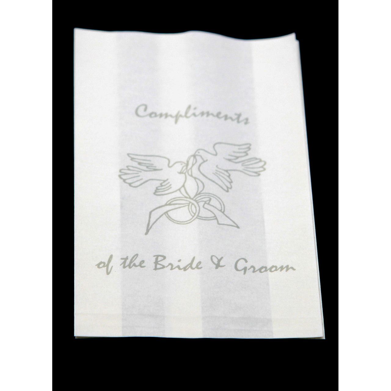 200 Pack Wedding Cake Bags Greaseproof Wax Paper Slice Take Home Favour Silver Doves