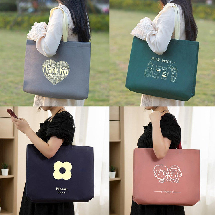 These fashionable non-woven fabric tote bags are perfect for a variety of uses, from shopping to carrying daily essentials. Each set includes 25 eco-friendly, reusable bags that come in three different sizes to suit your needs. Made from high-quality spunbond non-woven fabric, these bags are durable, lightweight, and stylish, featuring a range of charming designs.