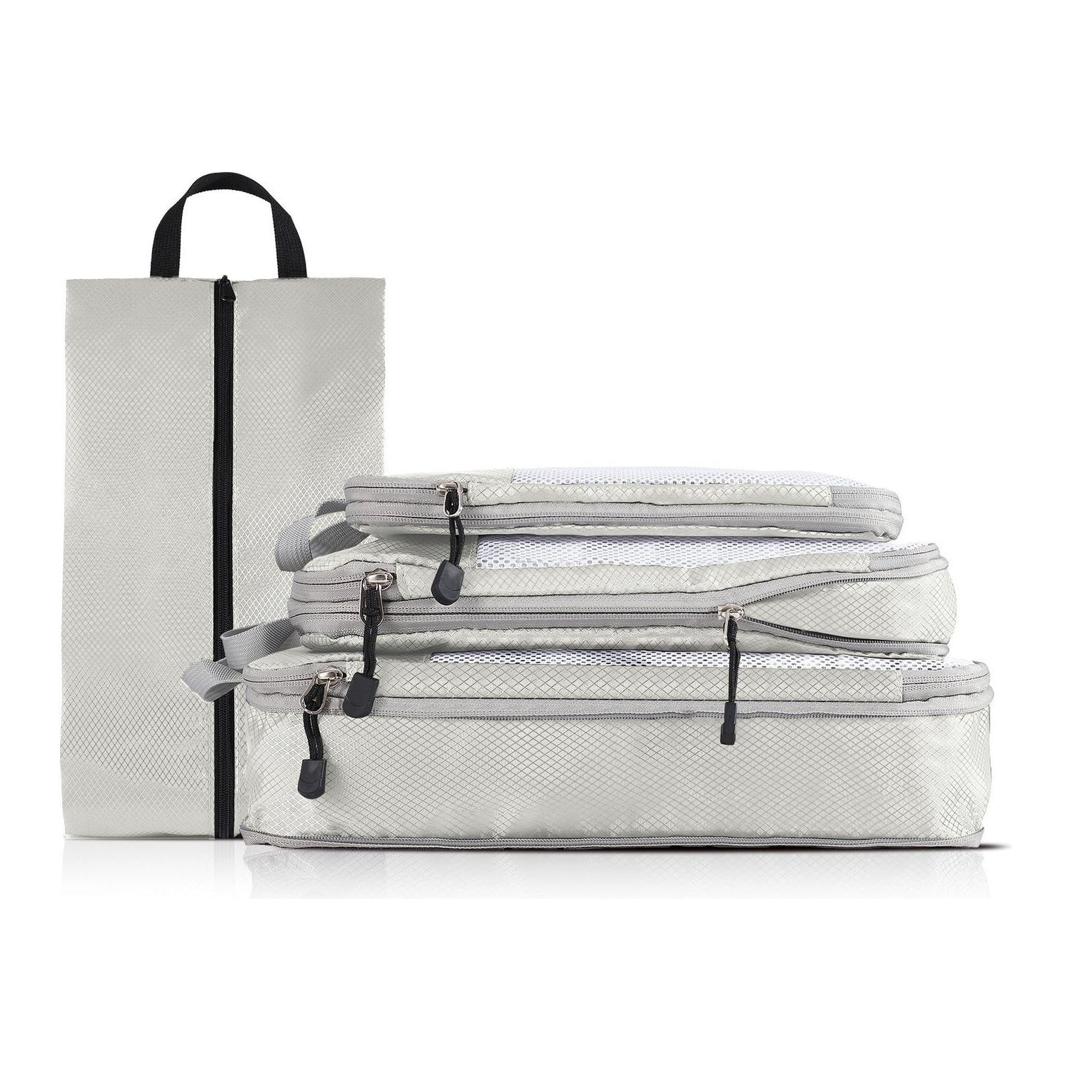 4-piece Set Off White Compression Travel Storage Bags Set, Mesh Travel Organizers for Luggage, Foldable and Space-Saving Packing Cubes