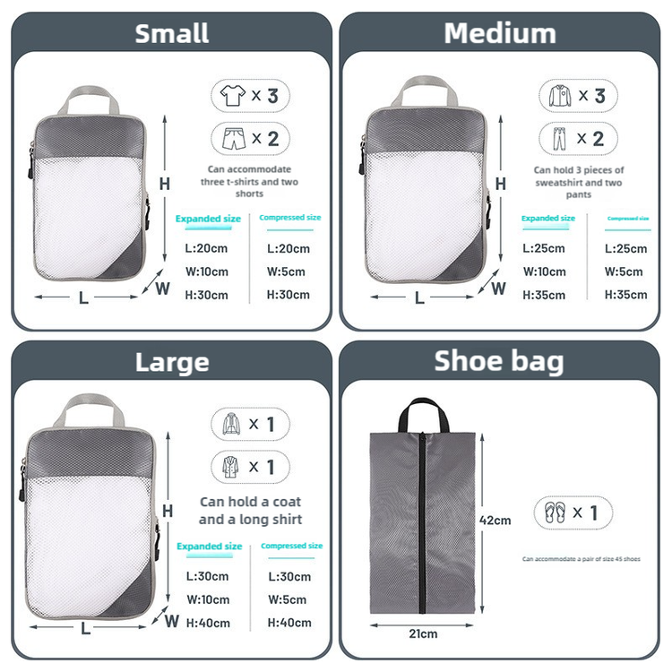 Compression Travel Storage Bags Set, Mesh Travel Organizers for Luggage, Foldable and Space-Saving Packing Cubes
