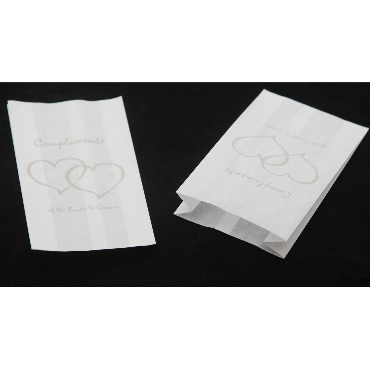 50 Pack Wedding Cake Bags Greaseproof Wax Paper Slice Take Home Favour Silver Heart n Message
