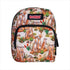 Cute mini backpack featuring playful meerkats, desert rock, shrubbery, and bottlebrushes on a sandy background