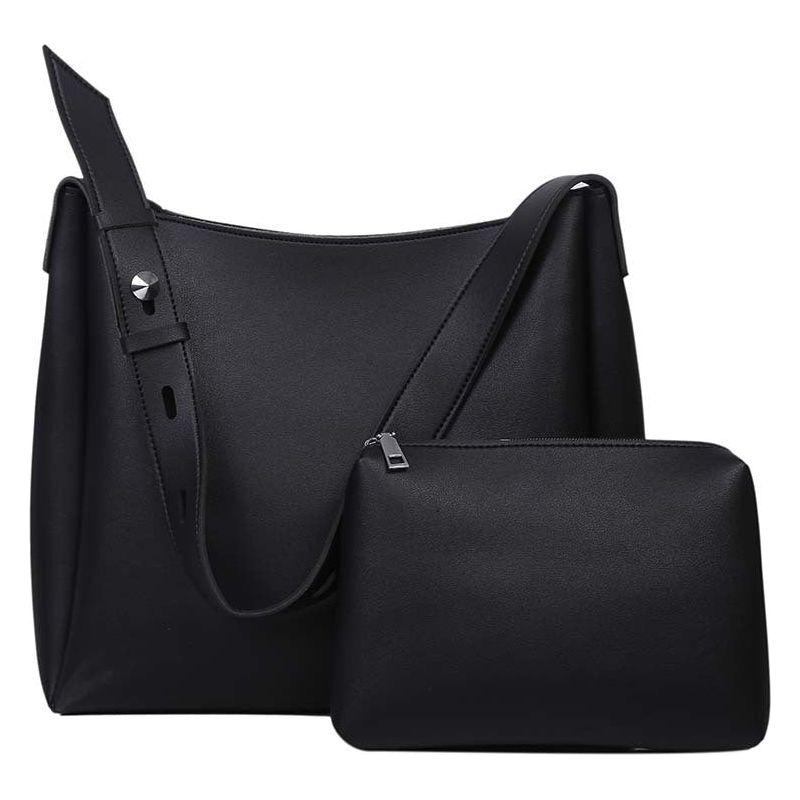 Black 2-Piece Women's Bucket Bag Set - Vintage Large Capacity Shoulder & Crossbody Bag (Commuter Style)