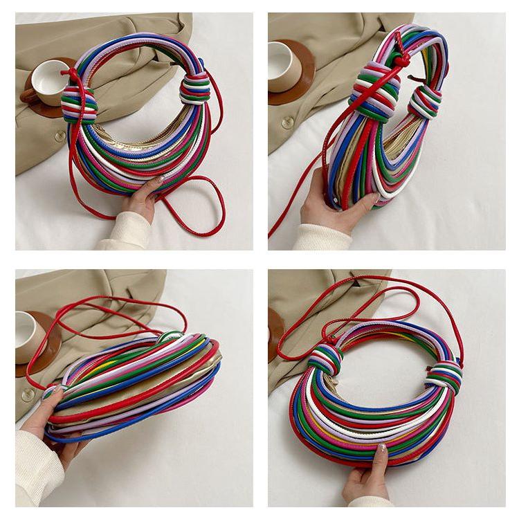 Fashionable Candy Color Handbag – Crossbody Women’s Woven Bag with Unique Line Design