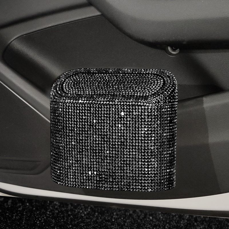 Keep your car clean and stylish with this stunning rhinestone-covered car trash can. This dazzling auto garbage bin doubles as a chic organizer, making it perfect for storing small items and keeping your car clutter-free. Made with high-quality rhinestones and eco-friendly PU, this accessory will elevate your car's interior with a touch of sparkle and elegance.