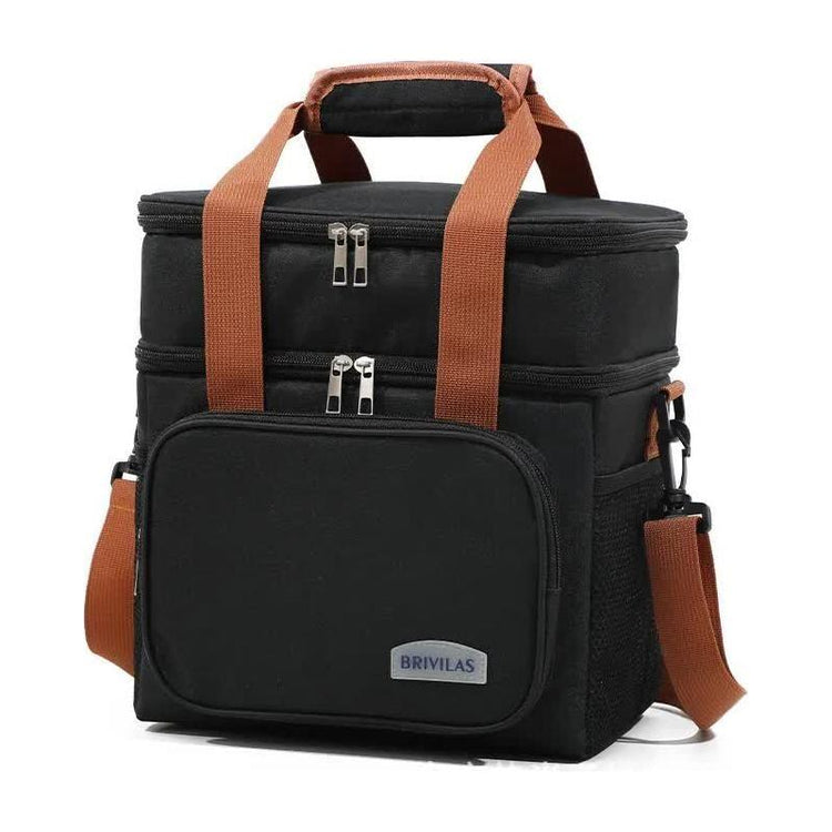 Black Large Capacity Lunch Bag – Dual-Layer Insulated Cooler Bag for Outdoor, Picnic, and Work Use