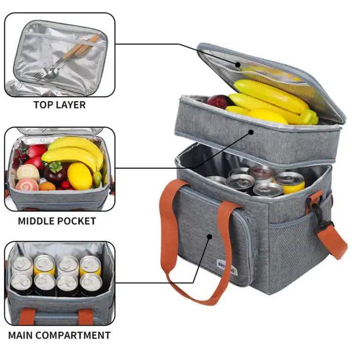 - Large Capacity: Spacious design that can hold multiple food containers, drinks, snacks, and ice packs, making it ideal for family outings, work lunches, or picnics.