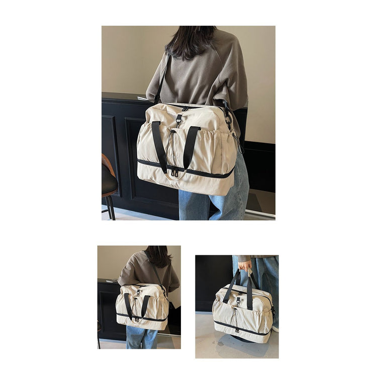 The lightweight and portable design makes it perfect for hand-carry, whether you're heading to the gym or traveling. This bag combines functionality with style, ensuring all your essentials are within reach while keeping wet items separate from dry ones.