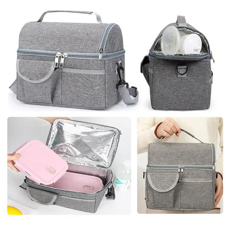 • Dual Layered Insulation: Featuring a double-layer design with aluminum foil lining, this bag keeps food and breast milk cool and fresh for hours.