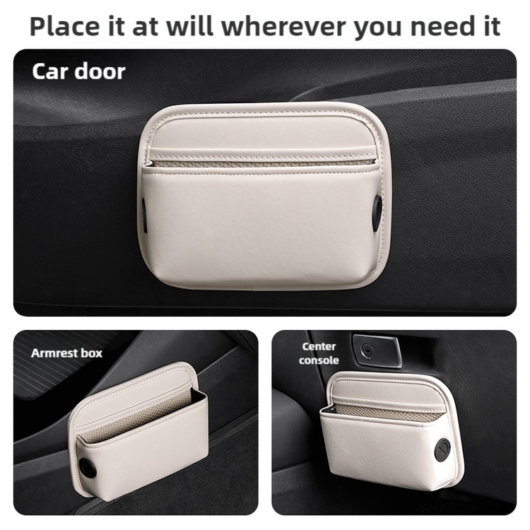 Keep your car neat and organized with this premium PU leather storage bag. Designed for versatility, it easily attaches to car doors, armrests, or central consoles, providing a convenient space for storing phones, keys, and other small accessories.