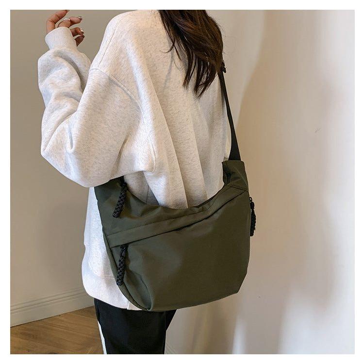 This stylish olive green crossbody bag combines modern design with functionality, making it perfect for everyday commuting or casual outings. The high-quality fabric and minimalist design exude understated luxury. With a spacious main compartment and zipper pocket, it can hold your phone, wallet, keys, and other essentials, perfectly meeting your daily needs.
