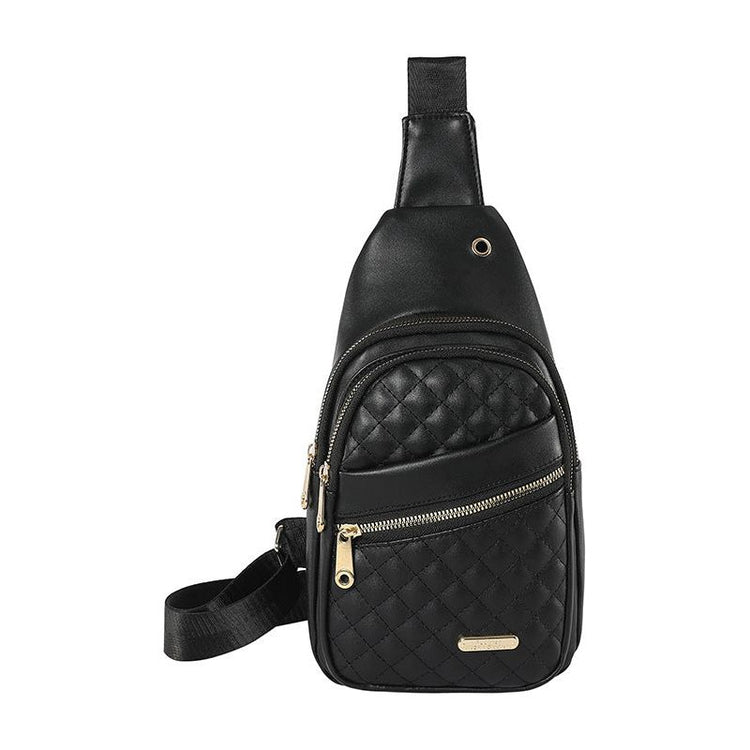Black Women's Quilted Sling Bag - Stylish Crossbody Shoulder Backpack
