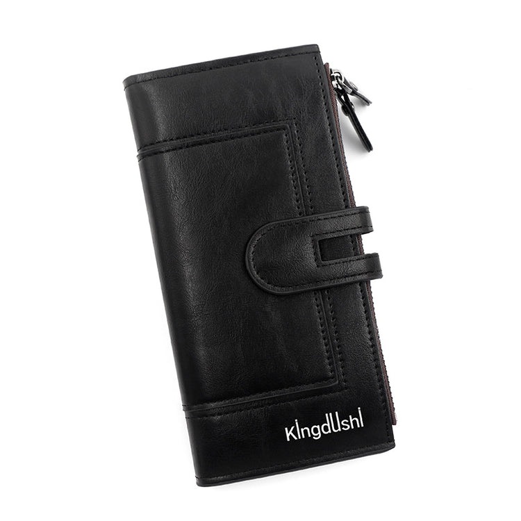 Black Women's Stylish Long Wallet - Multi-Card Slot PU Leather Clutch with Phone Pocket & Coin Zipper