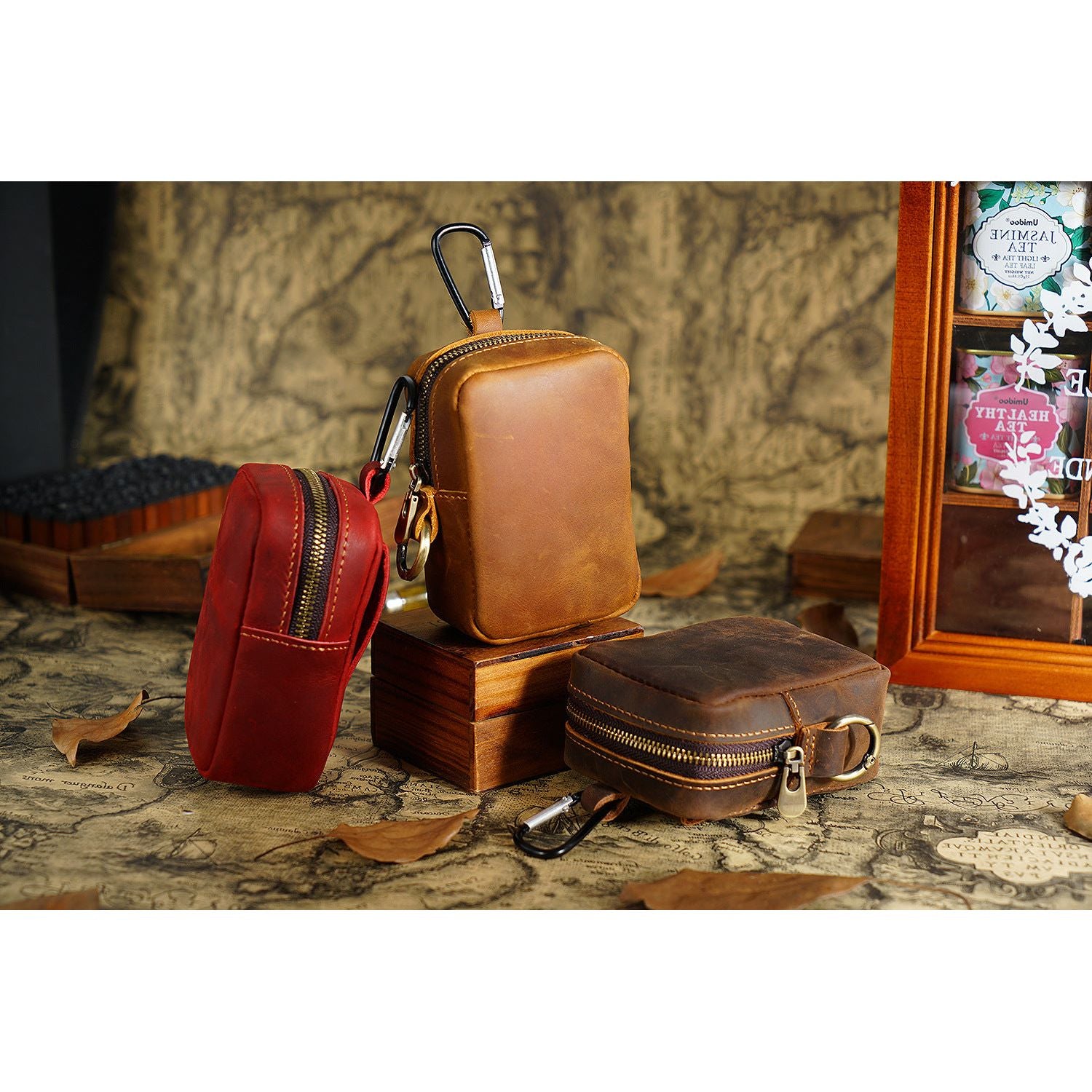 Keep your essentials close at hand with this stylish and practical genuine leather belt pouch. This compact waist bag is perfect for carrying coins, cash, cards, and small everyday carry items while running, hiking, or simply running errands. The zippered closure ensures your belongings stay secure, while the belt loop and carabiner clip offer versatile attachment options.