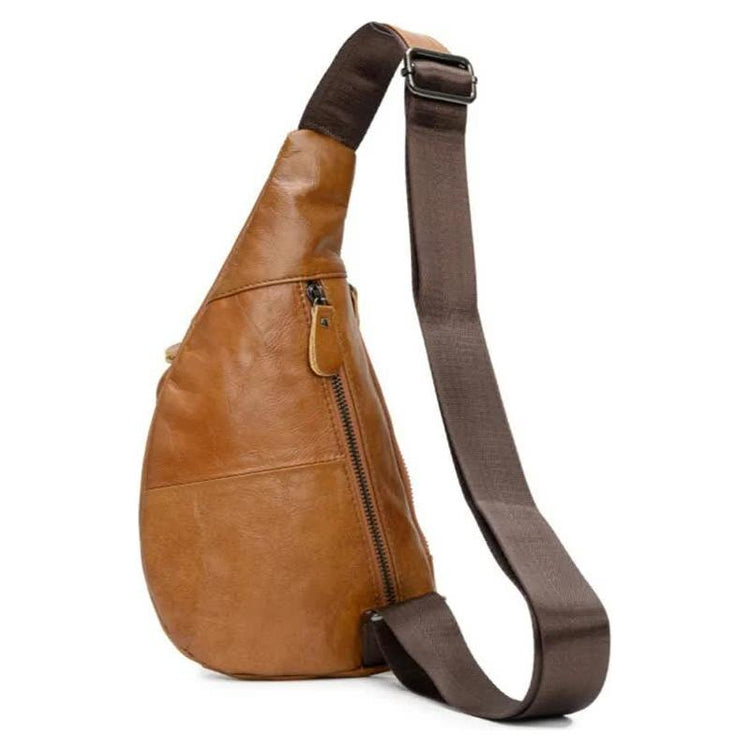 Brown Men's Leather Sling Backpack - Casual Crossbody Chest Bag