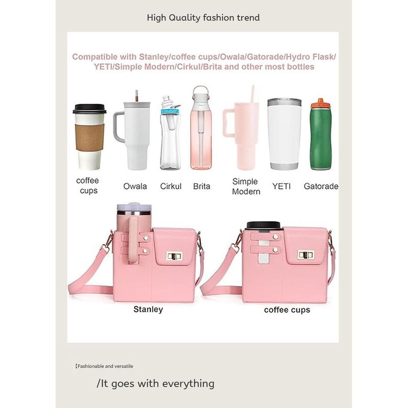 Stay stylishly hydrated and organized with our Chic PU Leather Crossbody Bag, uniquely designed with an integrated tumbler holder. This fashionable and versatile bag is perfect for carrying your favorite beverage cup (compatible with Stanley, coffee cups, Owala, Cirkul, Brita, Simple Modern, YETI, Gatorade, and most other bottles) along with your daily essentials. Crafted from durable PU leather with a polyester lining, it features a secure zipper closure and a classic turn-lock clasp on the front flap. The multi-compartment design includes space for your phone, lipstick, powder, and other small cosmetics or items. The adjustable shoulder strap offers comfortable carrying, with a length ranging from approximately 41.3 to 47.2 inches. Ideal for youth (ages 18-25) and anyone looking for a trendy and practical accessory that goes with everything.