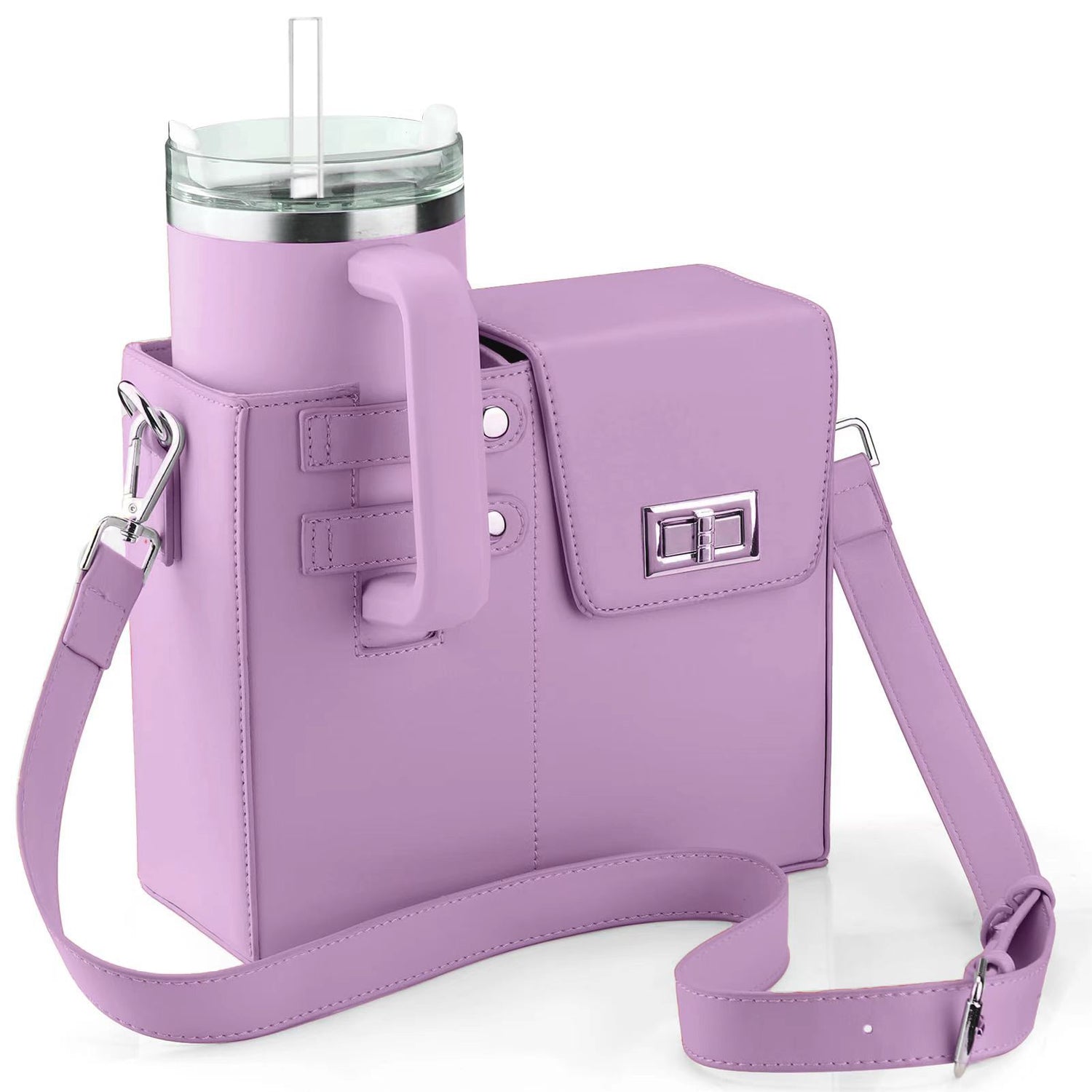 Chic PU Leather Crossbody Bag with Tumbler Holder - Multi-Compartment, Adjustable StrapChic PU Leather Crossbody Bag with Tumbler Holder - Multi-Compartment, Adjustable Strap,Does not include thermos cup(purple)
