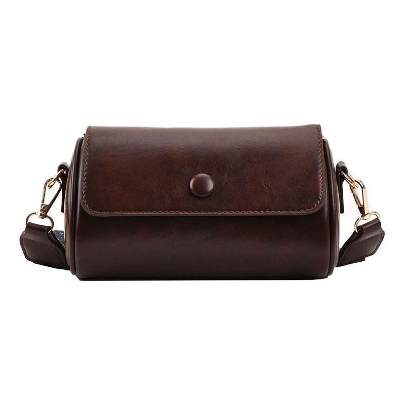 Coffee Vintage PU Leather Shoulder Bag with Adjustable Strap - Compact and Stylish