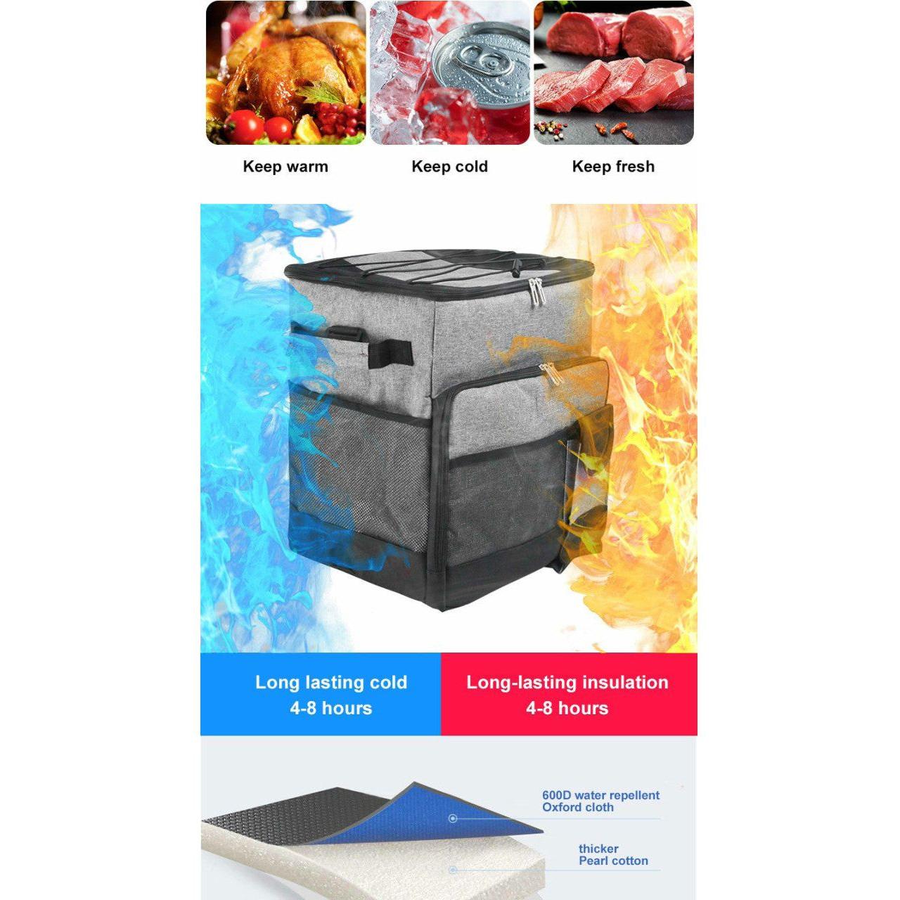 Made from 600D water repellent Oxford cloth and thickened PEVA, for durability and to keep drinks/food cool.