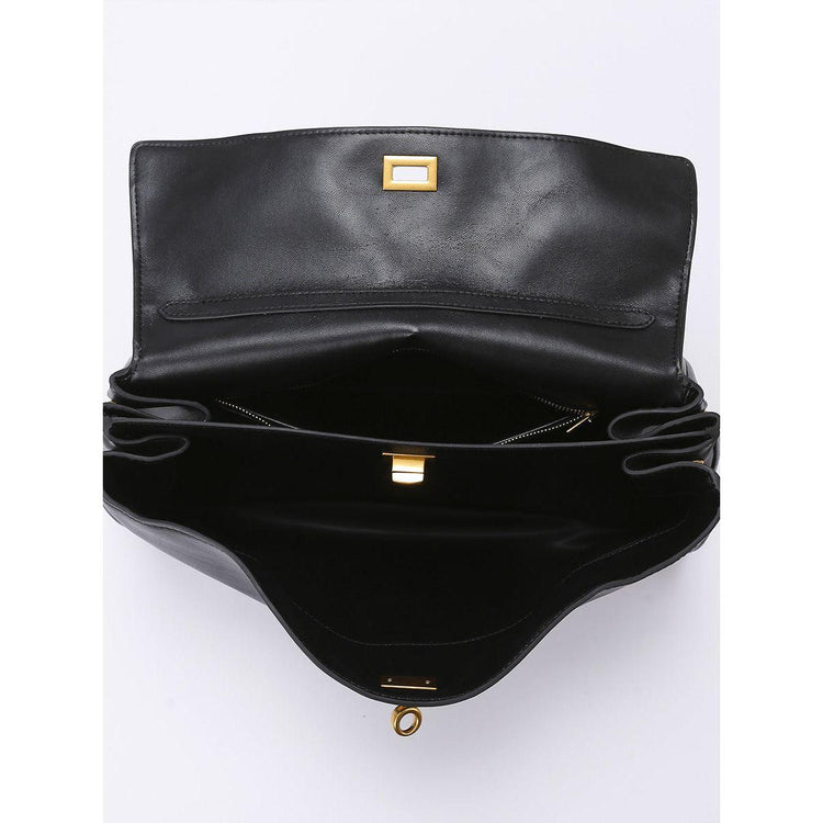 Elegant Black Leather Handbag with Gold Accents - Versatile Shoulder and Hand Carry