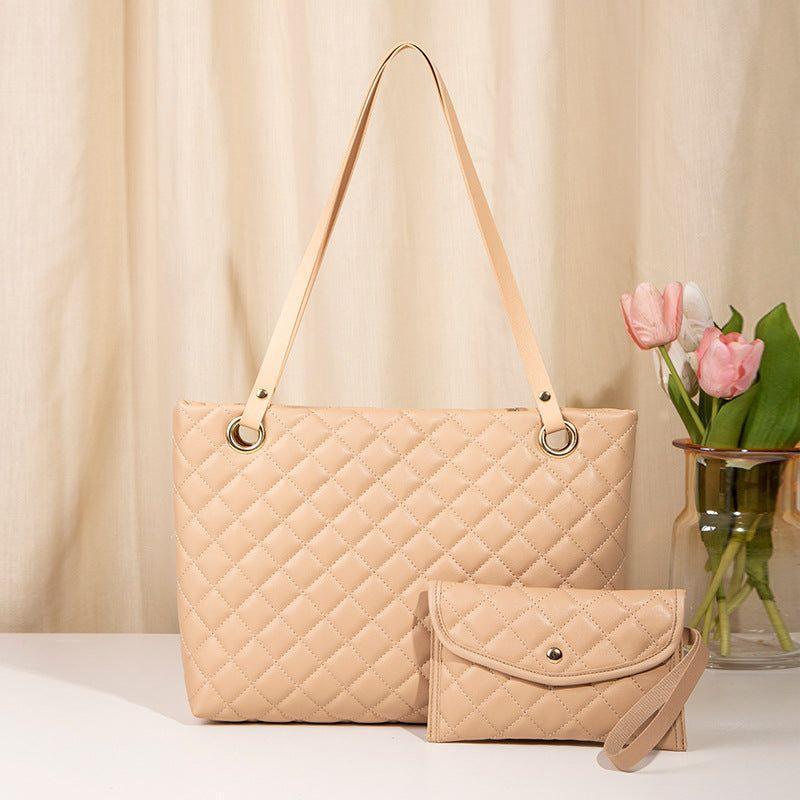 Elegant Quilted Bag with Matching Clutch - A stylish set featuring a soft Apricot quilted bag paired with a matching clutch. Perfect for the modern woman, this bag set combines practicality with elegance, ideal for everyday use or special occasions.