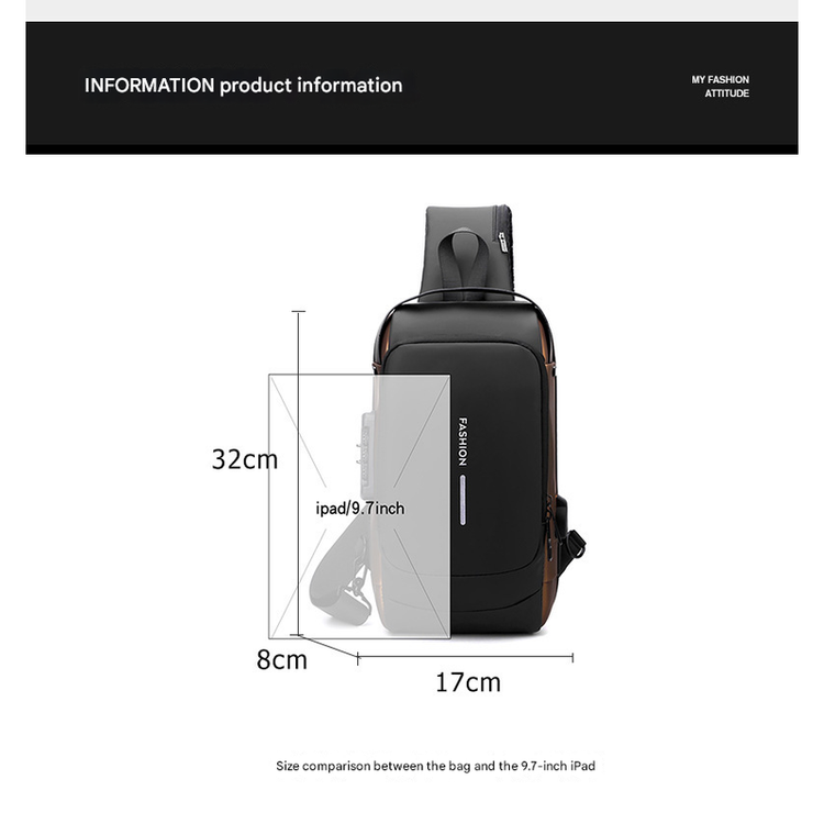 • Product Type: Anti-Theft Sling Bag / Crossbody Backpack