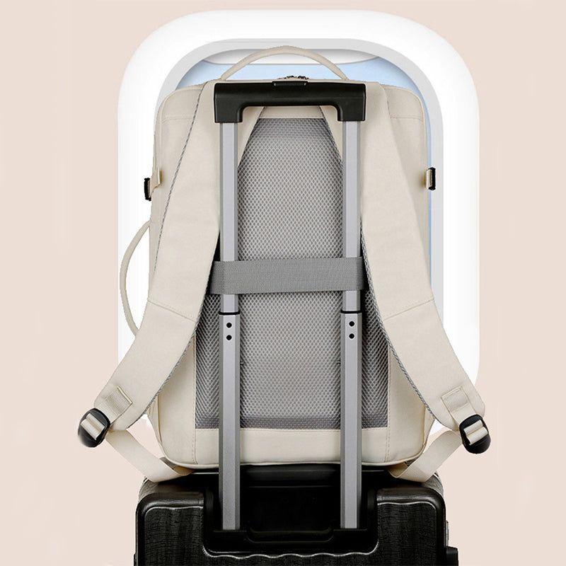 This stylish and functional large-capacity backpack is designed to make your travels hassle-free. With a lightweight design, dedicated compartments, and a built-in USB charging port, it is ideal for both daily use and extended trips. The beige color adds a touch of elegance while ensuring practicality.