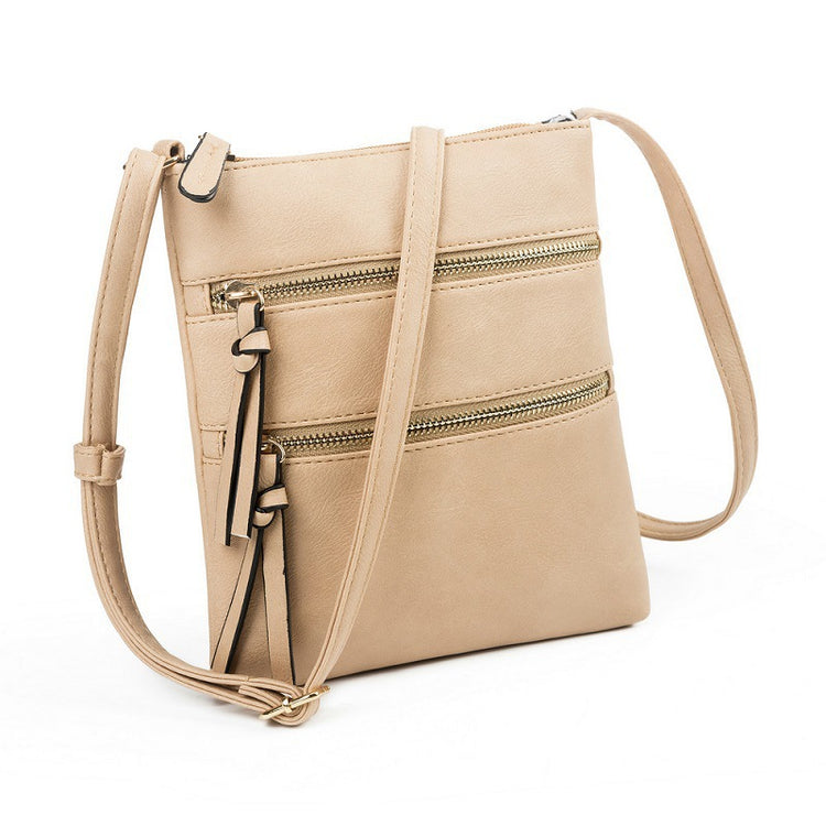 Light khaki Compact Women's Crossbody Bag - Adjustable Strap, Double Zipper Closure, 18x21cm Lightweight PU Leather Shoulder Bag