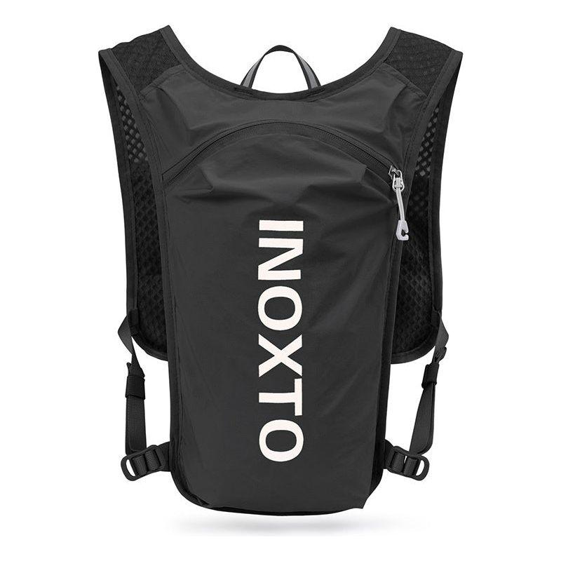Lightweight Hydration Running Vest with 5L Capacity and Reflective Strips, Black backpack with white text