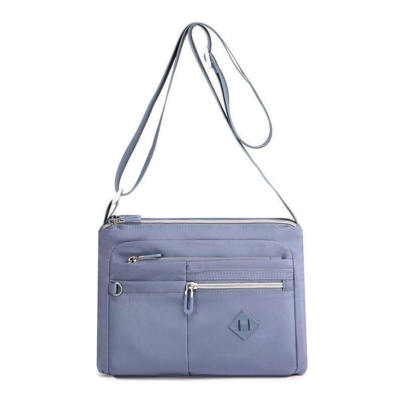 Lightweight Nylon Crossbody Shoulder Bag - Light Blue, Adjustable Strap, Multi-Pocket Design