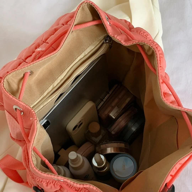 Stylish and functional, this Lightweight Quilted Nylon Backpack is designed for daily use, offering ample storage space and a trendy look. Its compact size and lightweight design make it perfect for school,work, or casual outings.