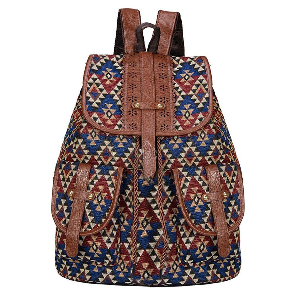 Lozenge Pattern Bohemian Style Canvas Backpack - Vintage Tribal Pattern Travel Bag