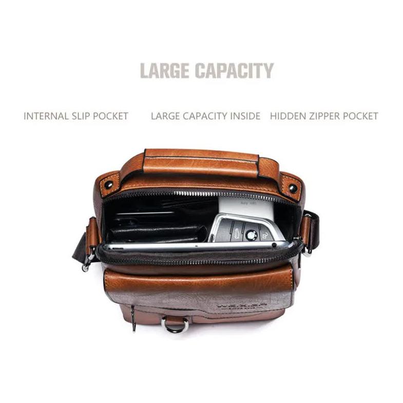 Men's Vintage Leather Shoulder Bag - This stylish and functional crossbody messenger bag is crafted from premium PU leather, combining a timeless vintage look with modern utility. With multiple compartments, this bag is perfect for keeping all your essentials organized, whether for work, travel, or everyday use. The adjustable strap and top handle provide versatile carrying options.