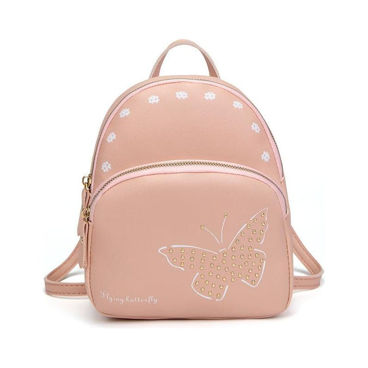 Mini Faux Leather Backpack with Butterfly Design -Pink Cute Backpack for Girls