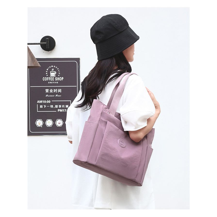 Elevate your everyday style with our tote bag, a perfect blend of elegance and practicality for the modern woman. Crafted from high-quality nylon fabric, this lightweight tote weighs just 0.3kg, making it an ideal choice for work, travel, or casual outings. With dimensions of 30cm x 34cm x 13cm (handle height: 21cm), it easily accommodates A4 magazines, books, and daily essentials, ensuring you stay organized on the go.