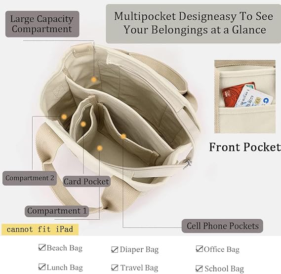 • 【Tote Bag with Compartments】Large capacity, multiple pockets and compartments, large and small size can be selected, a variety of colors