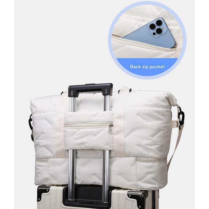 Meet the bag that does it all. Whether you're heading to a yoga class, packing for a weekend escape, or need a reliable gym partner, this stylish quilted duffel bag is designed to keep you organized on the go. Its chic design, combined with intelligent features, makes it the perfect blend of fashion and function for your active lifestyle.