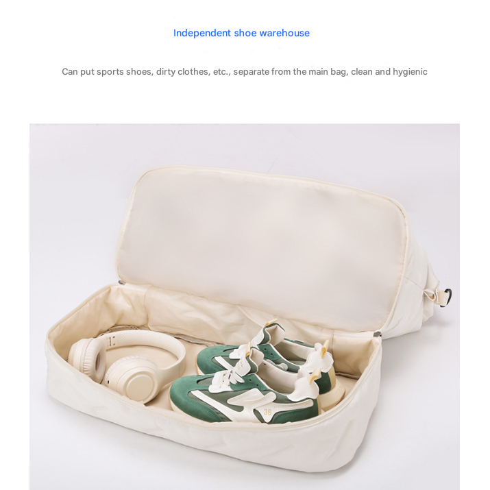 • Separate Ventilated Shoe Compartment: Keep your shoes or dirty laundry away from your clean gear. The dedicated zippered compartment at the base of the bag is hygienic and conveniently accessible.